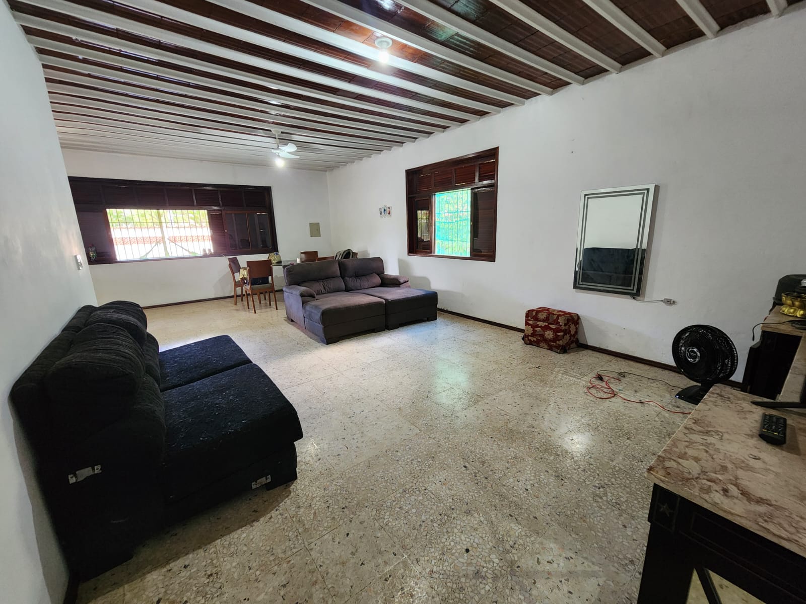 A CASA CONSISTE EM: AMPLA SALA EM L COM DOIS AMBIANTES, COZINHA, 3 QUARTOS SENDO UMA SUÍTE, BANHEIRO SOCIAL, AMPLA VARANDA.